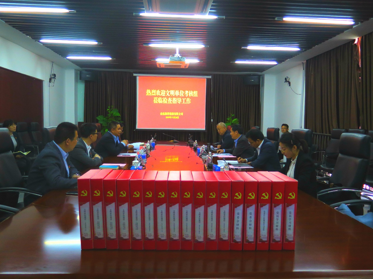 考核組實地參觀檢查了公司展廳、職工活動中心、職健身房、黨員活動室、精神文明宣講室和辦公區環境建設等。聽取了公司關于省管企業文明單位創建情況的匯報,查閱了文明單位創建材料,觀看了公司宣傳片和廉潔文化微電影,與黨員代表、職工群眾代表進行了座談交流。