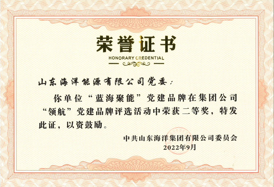 在隨后舉行的集團公司“領航”黨建品牌成果發布會上,公司黨委“藍海聚能”黨建品牌榮獲集團公司優秀黨建品牌二等獎。