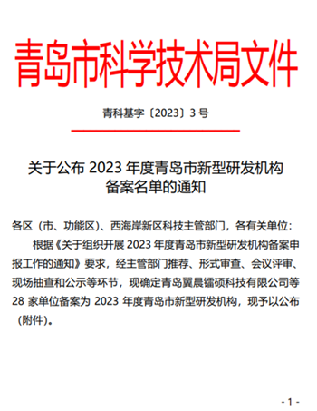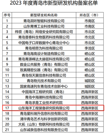 11月22日,山東海洋能源所屬海工研究院成功入選青島市科學(xué)技術(shù)局發(fā)布的2023年度青島市新型研發(fā)機(jī)構(gòu)備案名單,將享受政府政策優(yōu)惠及資金支持。