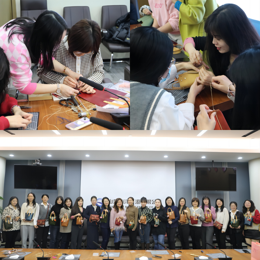 公司本部組織開展了“指尖塑‘革’調 巾幗展風采”手工皮革制作活動,在活動現場,專業老師通過講解皮具的構成和制作方法,帶領女職工齊心協力制作一個個精美皮具制品,增加了技能的同時,提高了女職工動手能力和團結協作意識,營造了大力弘揚勞模精神、勞動精神、工匠精神的濃厚氛圍。