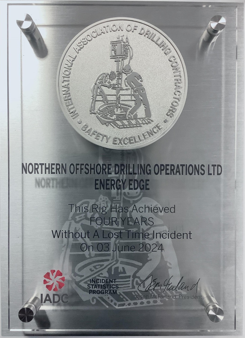 近日,山東海洋能源所屬Energy Edge鉆井平臺榮獲國際鉆井承包商協會頒發的“四年無損工事件”獎牌,安全運營管理能力受到國際行業組織充分認可。