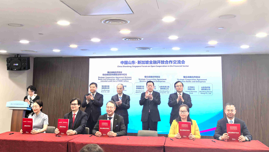 作為“2024新加坡-山東周”活動的重要組成部分,10月9日舉行的“中國山東-新加坡高水平開放合作交流會”吸引了來自新加坡和山東約500名政商界人士參加。在山東省委副書記、省長周乃翔等領(lǐng)導(dǎo)的見證下,集團(tuán)公司權(quán)屬企業(yè)山東海運(yùn)與華僑銀行簽署了戰(zhàn)略合作協(xié)議,未來雙方將在授信品種流動資金貸款、融資性保函、銀團(tuán)貸款、債券投資等領(lǐng)域展開合作,并進(jìn)一步密切雙方合作關(guān)系,拓展深化合作領(lǐng)域。